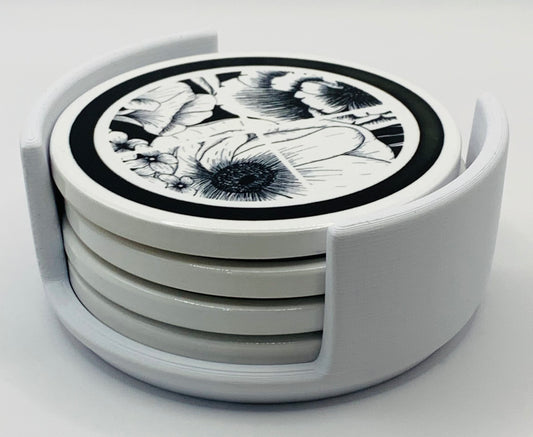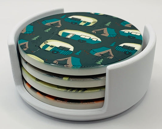 I offer a variety of custom printed coffee mugs with matching coasters, coaster sets, individual coffee mugs, tumblers for kids and grown ups and car coasters!